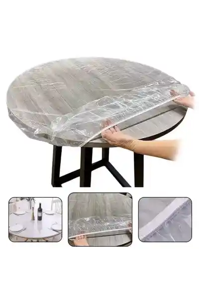 Sunup SN-24899 Pvc Şeffaf Yuvarlak Masa Örtüsü Su Geçirmez Alez Etkinlik Örtüsü 10 Adet 120cm